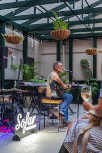 Tucked in the courtyard of one of Charleston’s dreamiest boutique hotels, the Greenhouse at Hotel Emeline is a vintage, sun-dappled hideaway. Surrounded by ferns and exposed brick, it’s the perfect cozy-but-chic backdrop for Sofar sets that stretch into the golden hour. It’s giving slow sips, soft lights, and a soundtrack of Southern charm.